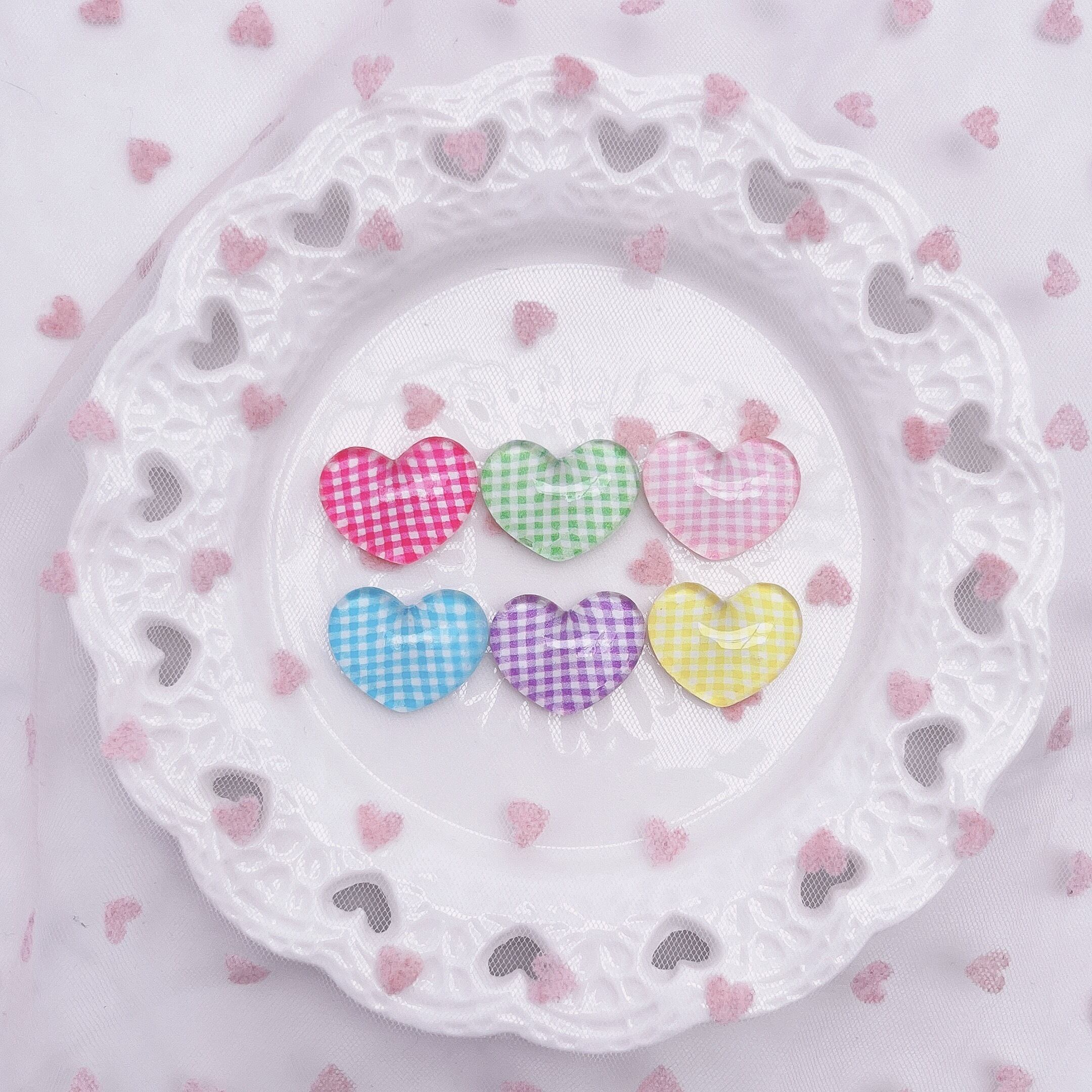 【全色セット(6個)】ギンガムチェック ハート