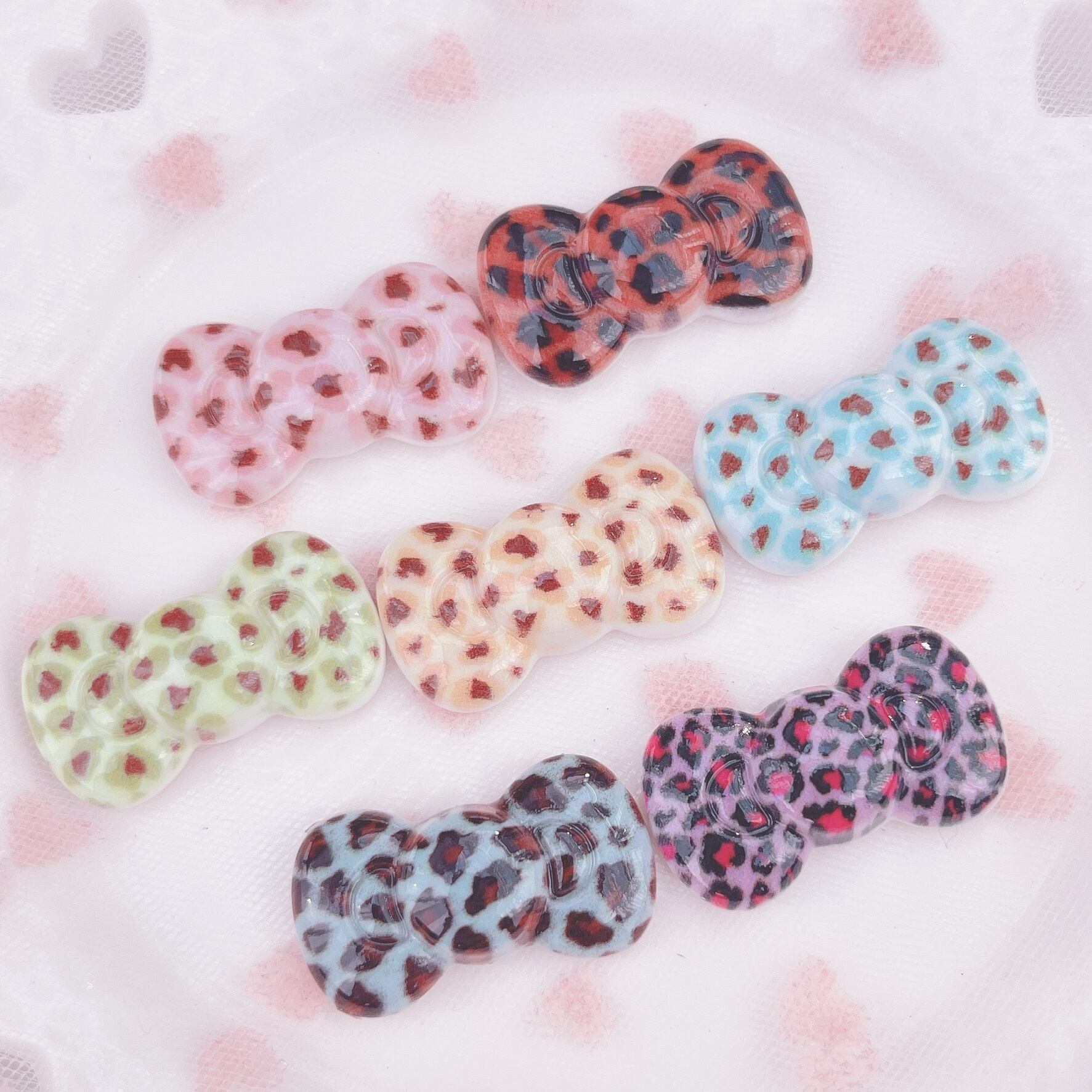 【全色セット(7個)】レオパード柄 りぼん